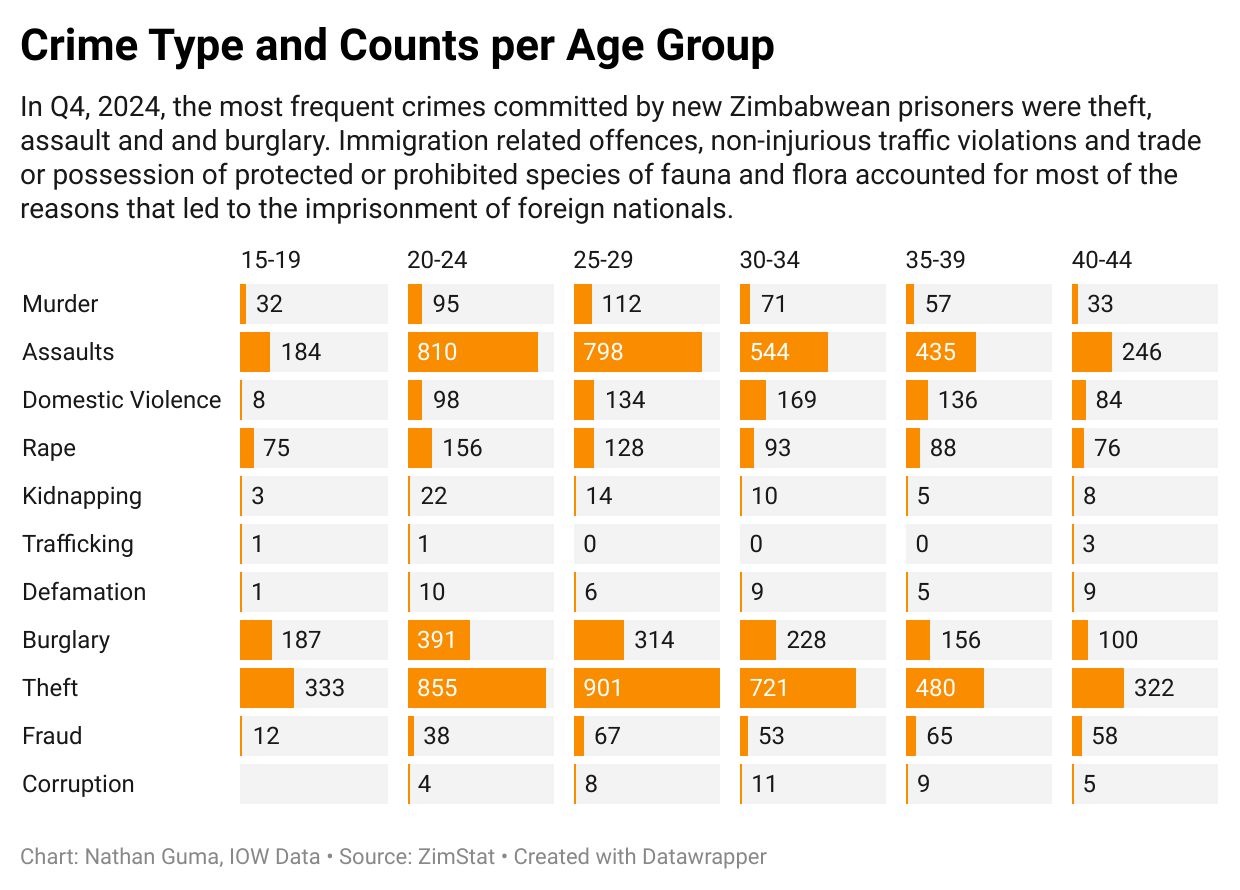 Data from the Zimbabwe National Statistics Agency (ZimStat) has shown that corruption cases account for one of the lowest numbers of new prisoner admissions in the fourth quarter of 2024, despite the country performing poorly on corruption indices.