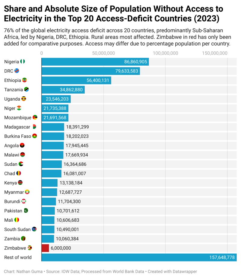 DATA from the The World Bank, in its report Tracking SDG 7: The Energy Progress Report, has revealed a severe global electricity access deficit, with 76% of the world’s unconnected population concentrated in just 20 countries, 18 of which are in Sub-Saharan Africa.