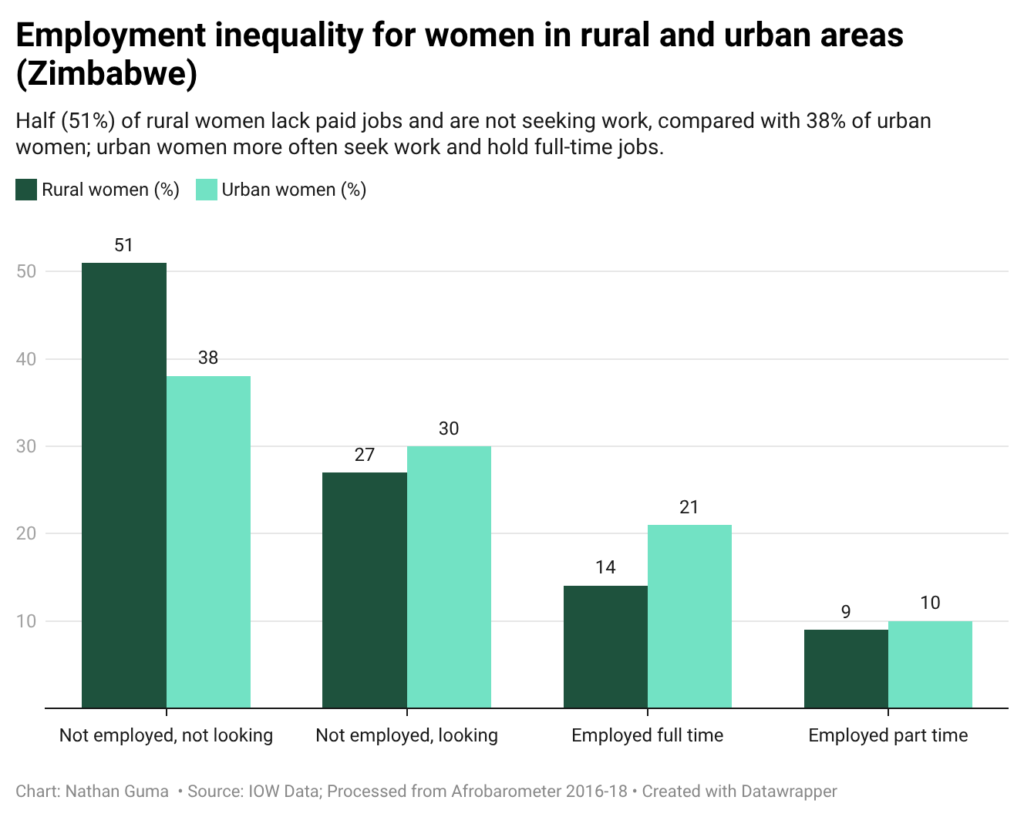 Data from a 2020 Afrobarometer survey indicates that rural women are less likely than their urban counterparts to have secure employment.